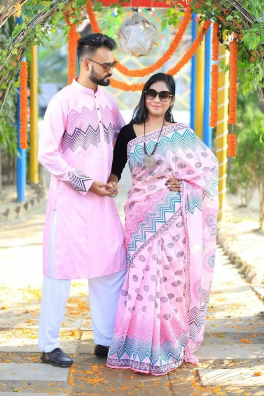 Dhupian Saree + Punjabi (Couple set)