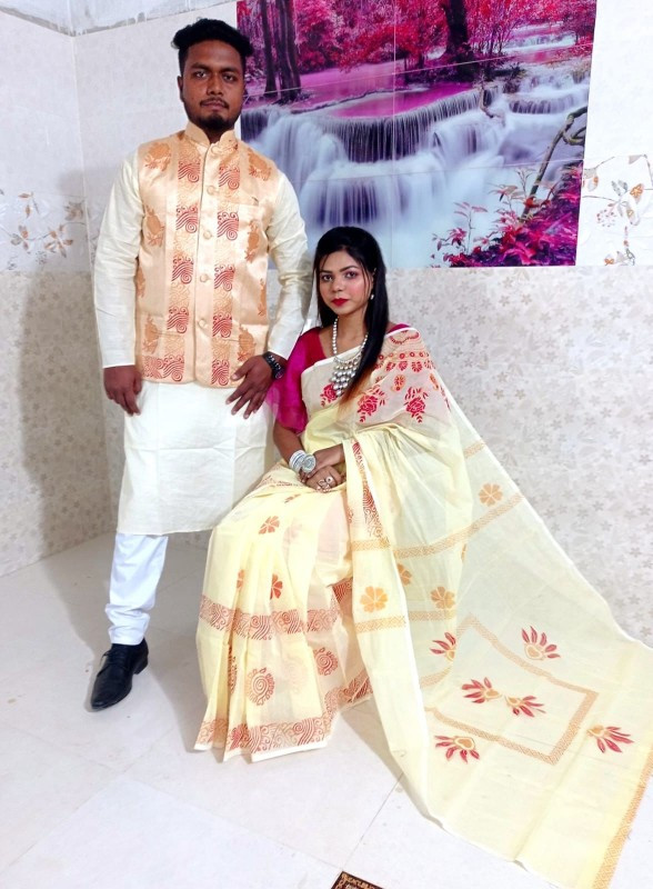 Stylish New Collection Saree & Panjabi koti Combo Couple Dress